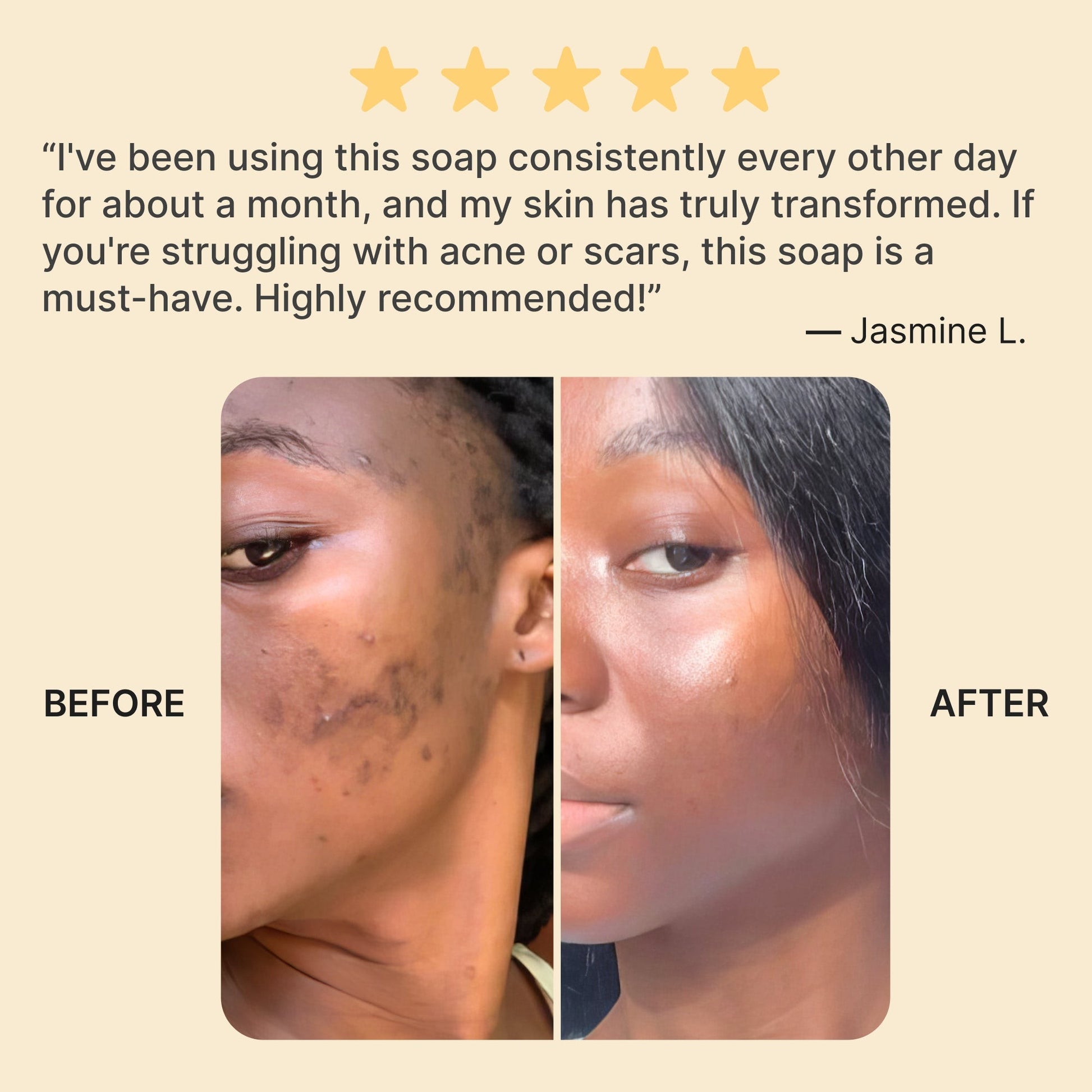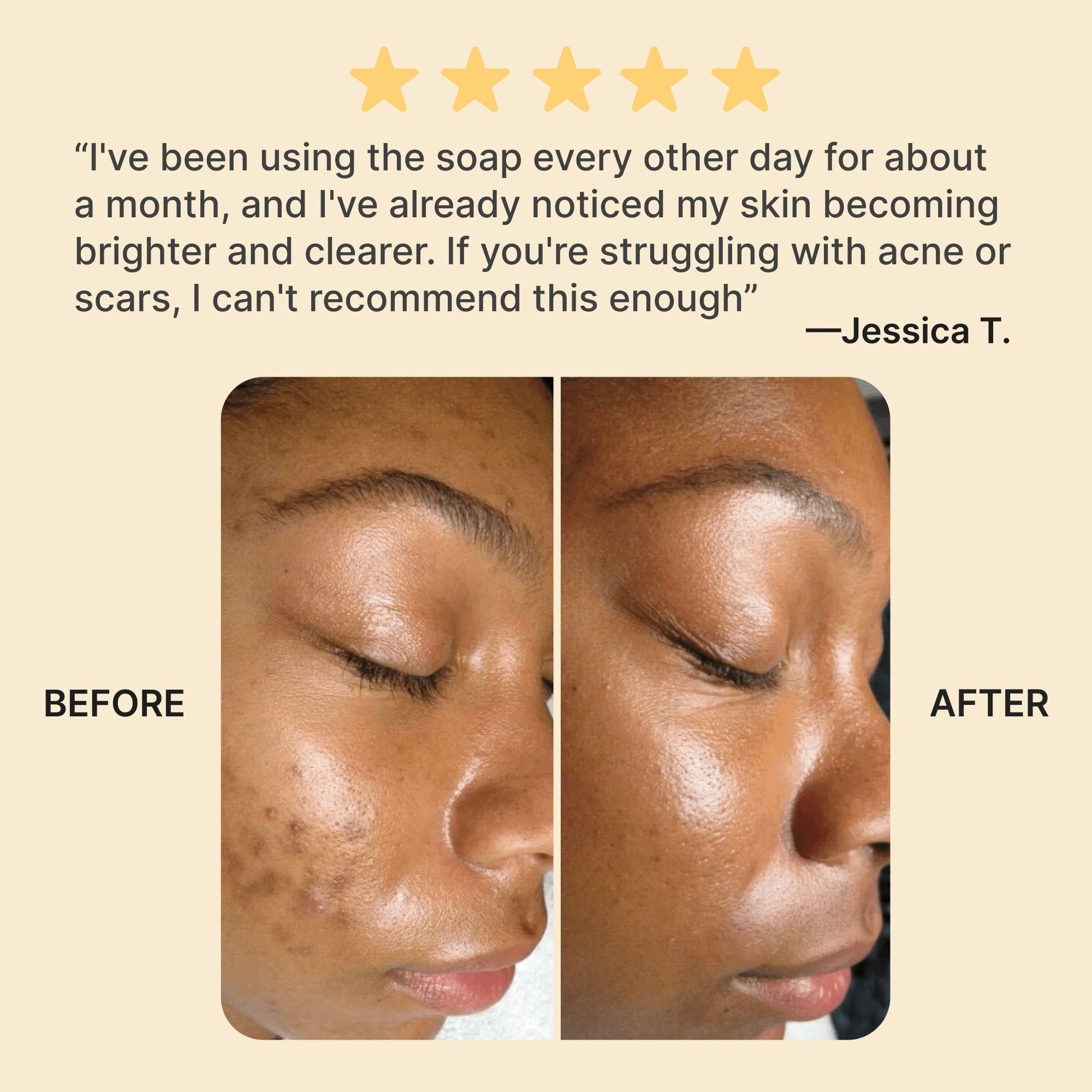 Den här tvålen är skapad för verklig hud – mot mörka fläckar, akne, ärr, irritation och ojämn hudton.