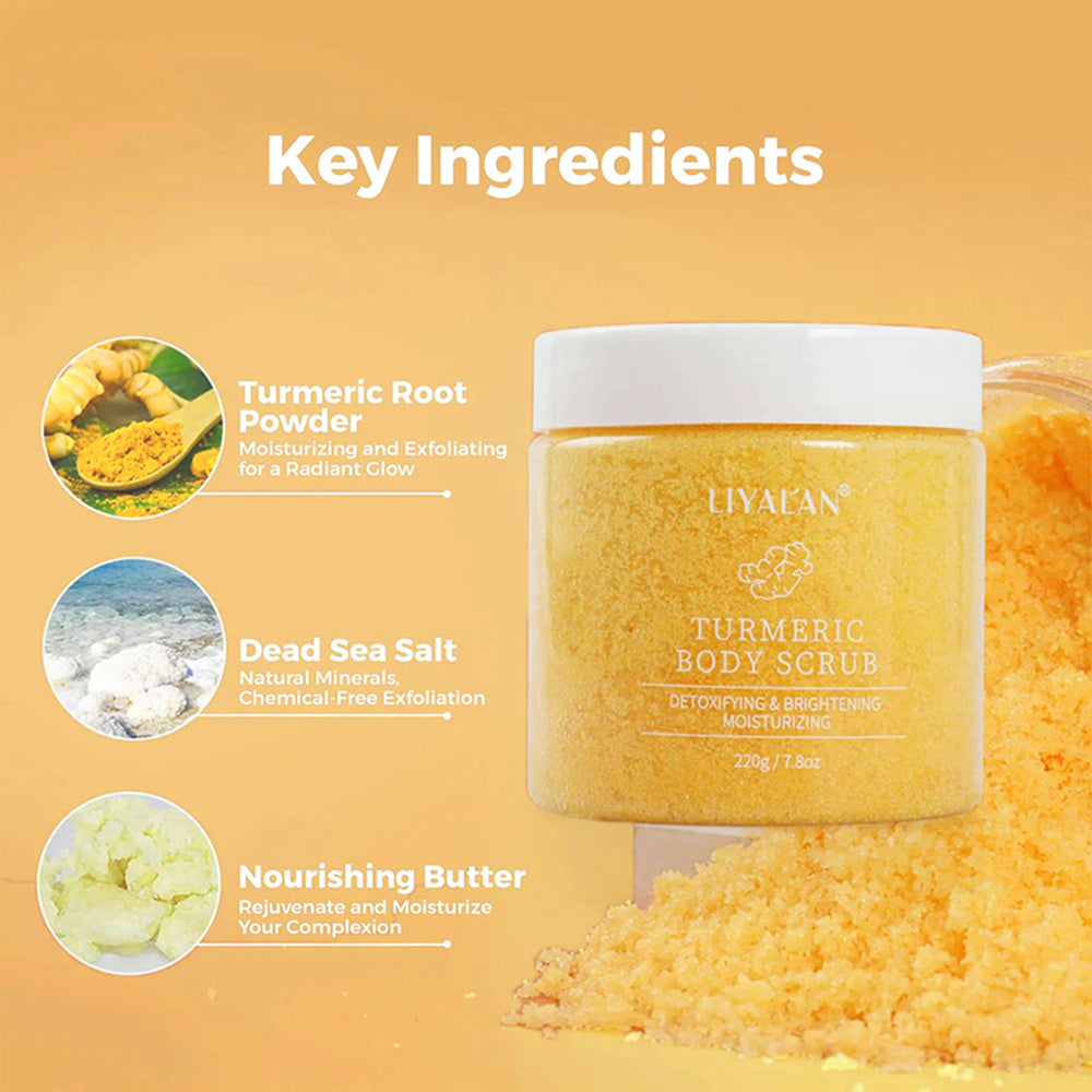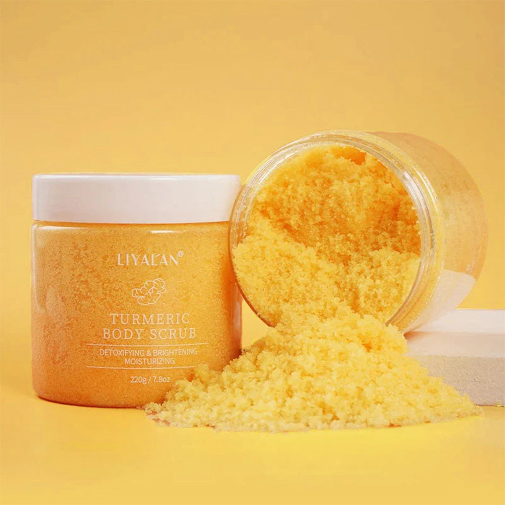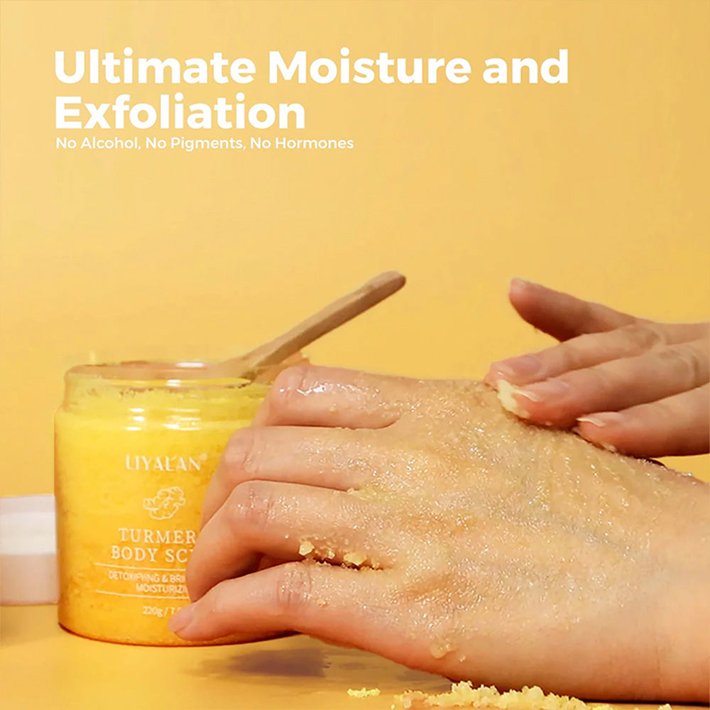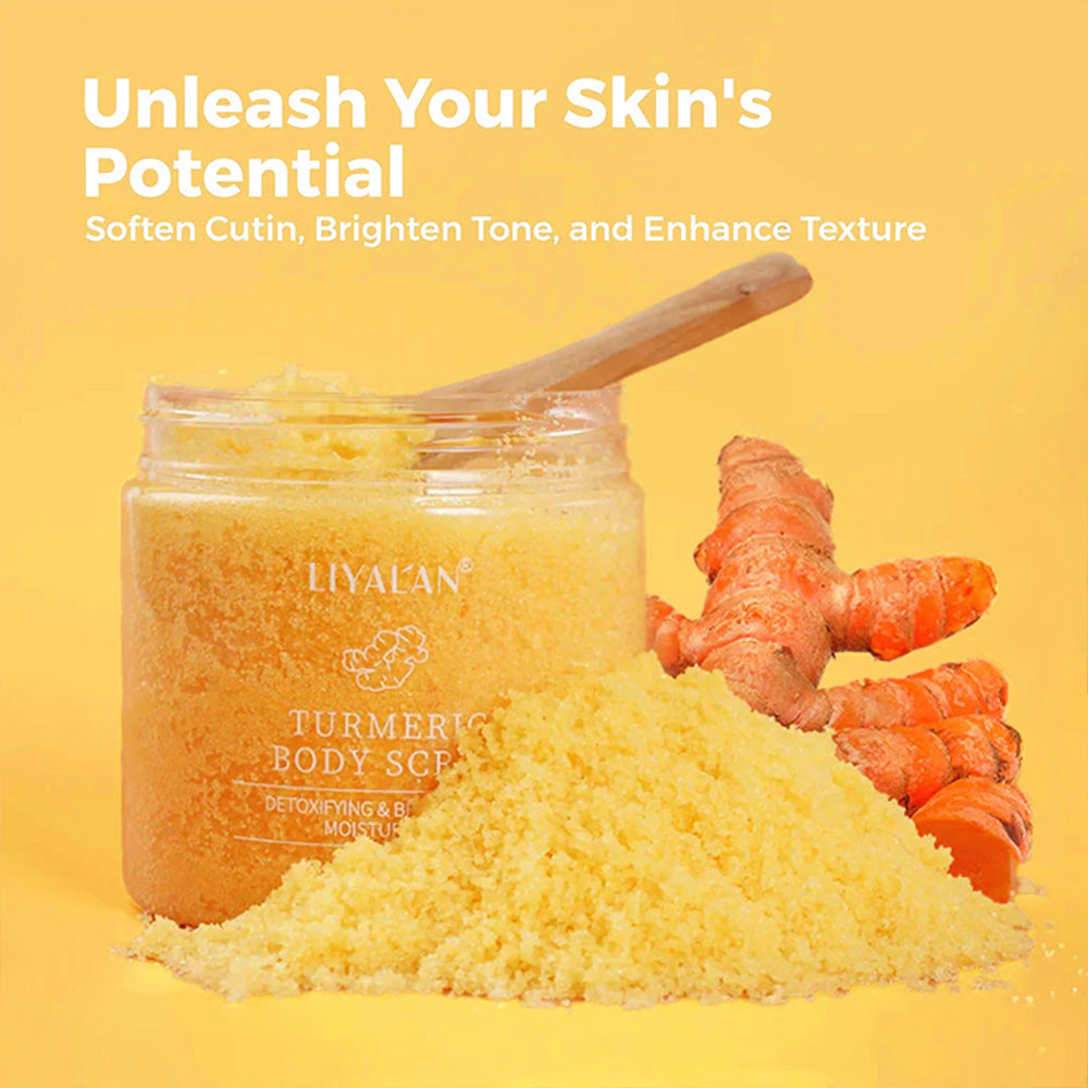 Förvandla din glanslösa och torra hud till en strålande och lysande hy med vår kroppsskrubb med gurkmeja. Denna skrubb består av naturliga ingredienser som exfolierar huden på ett skonsamt sätt och ger den näring så att den blir synligt mjukare och mer strålande. Säg adjö till glanslös hud och välkomna en vackert strålande hy.